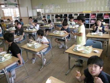 今週から、個包装の給食から、簡易給食になりました。準備は大変になりましたが、温かい給食、おいしいね!評判は上々!