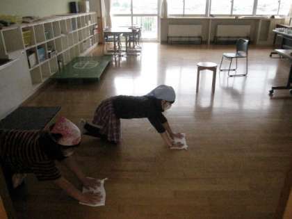 役割分担は大切!ほうきのほか、一生懸命ぞうきんがけしました!