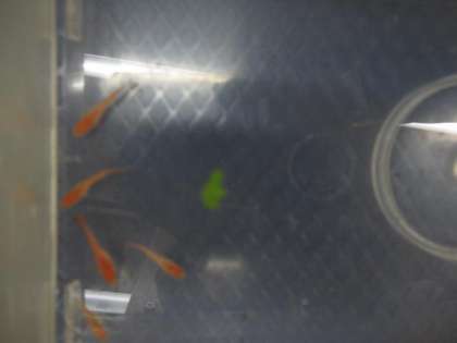 違いをよく見てください。写真真ん中が「楊貴妃(ヨウキヒ)」、写真下が「ヒメダカ」です。