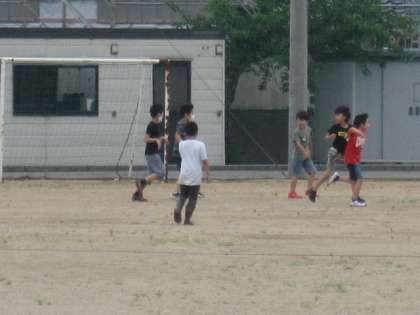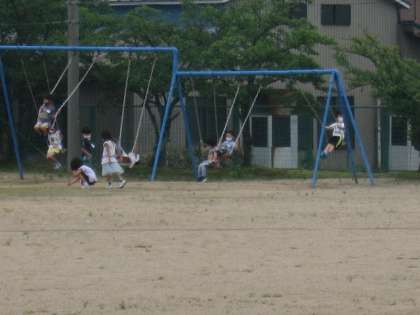 グラウンドの様子です。 運良く晴れていたので、ブランコ遊びや鬼ごっこをしていました。