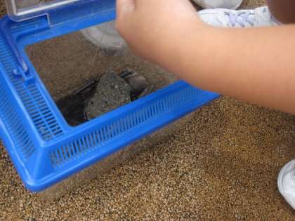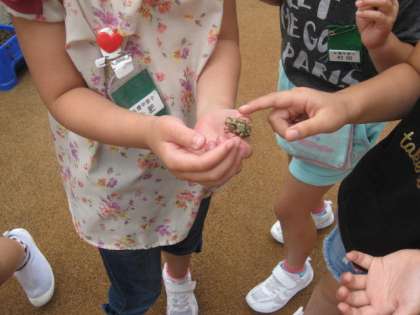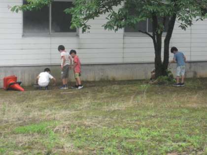 中庭では、コオロギを捕まえたり、カエルのえさを探したりしていました。