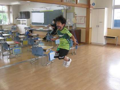 校舎内では、先生の仕事を手伝ったり、縄跳びしたり、次の授業の準備をしたりしていました。