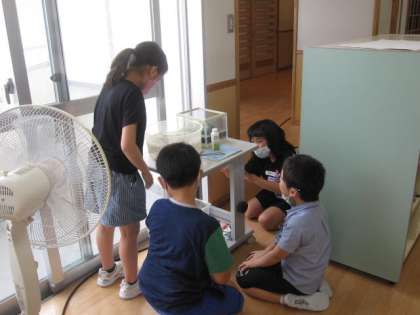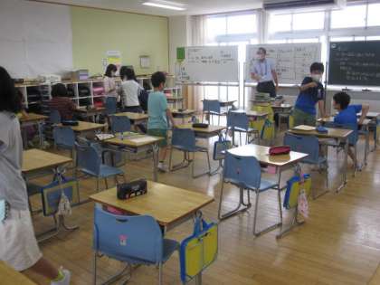 次の時間の準備で、ノートの配布を先生に頼まれて、手伝っています。