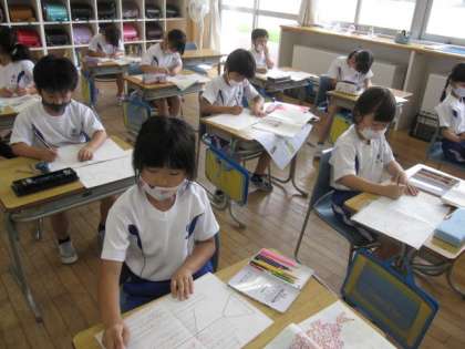 「スイミー」の紹介文を書きました。自分なりに紹介したいことを文章や絵を使って、整理しています。