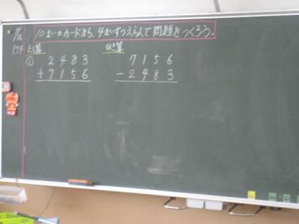 「10まいのカードから、4まいずつえらんで問題をつくろう」という課題で学習しました。