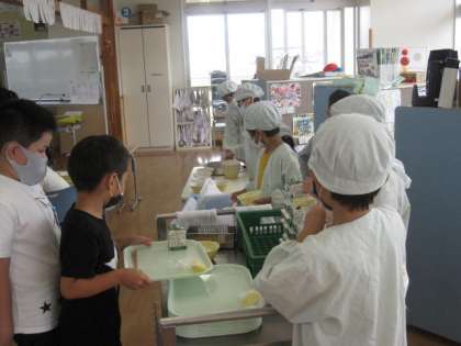 どのクラスも給食の準備に一生懸命!