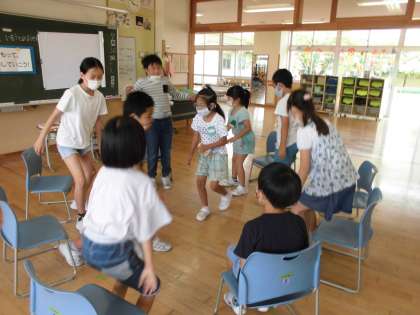 異学年交流班活動「第1回大成ワンファミタイム」を行いました。各班担当の先生の教室に集まり、自己紹介の後、「ハンカチ落とし」「フルーツバスケット」等を楽しみました。待ちに待ったファミリー班での活動で、どの子供も笑顔いっぱいの様子でした。活動の後は「楽しかったね」「6年生さんありがとう」「顔と名前を覚えたよ」「毎日ファミリー活動があったらいいな」という声が聞かれました。短時間でしたが、とてもすてきな時間になりました。次の「ワンファミタイム」が楽しみです。