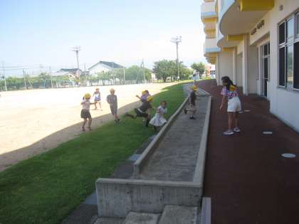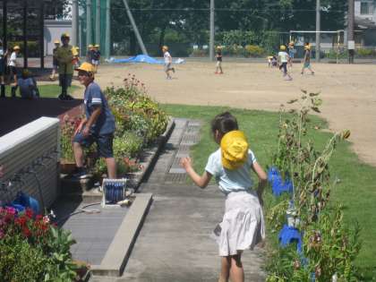 暑いけど、元気いっぱい外で遊んでいました。