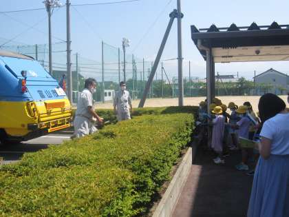 その後、外でゴミ収集車について学びました。