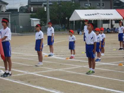 運動会の開会式の様子 各団役員の紹介 りりしく、大きく返事していました。