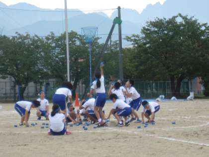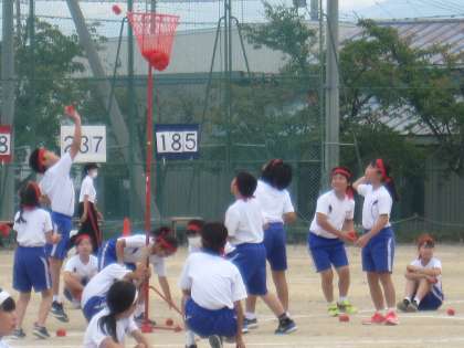 5年生の玉入れの様子です。 この後は、6年生と交代!