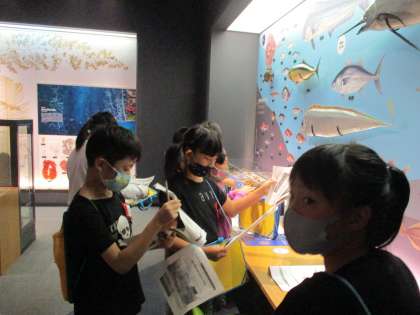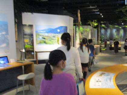 プラネタリウムを見た後は、事前に配付されていたワークシートを持ち、各グループで展示を見て回りました。子供たちは、真剣に考え、ワークシートの問題に答えを書いていました。学校では学べないような体験をして、たくさんの学びがありました。
