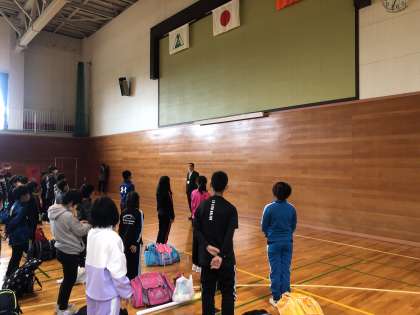 体育館で入所式をしています。