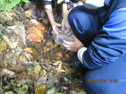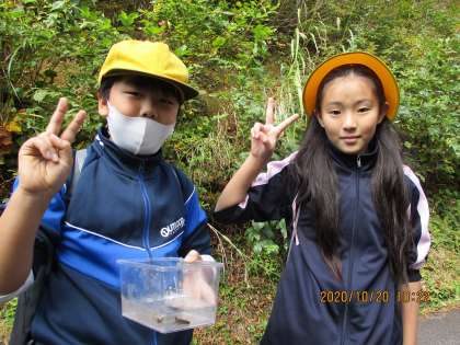 所の方が、ケースを貸してくださり、サンショウウオをその中に入れ、みんなで鑑賞できました。発見した人、捕まえた人すごい!ありがとう!おかげでめずらしい生き物を鑑賞できました。