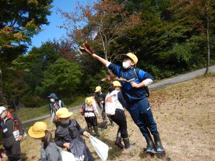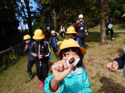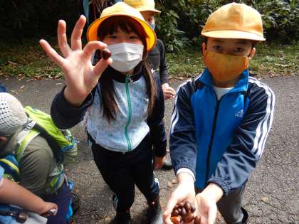 自然の家に戻る間、ドングリなどを拾いながら、楽しみました。