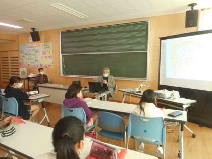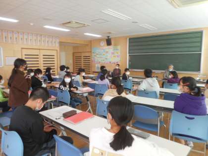 10月27日(火)「富山大空襲を語り継ぐ会」の佐藤進さんをお招きして戦争体験、富山大空襲についてのお話を聴きました。子供たちは、事前に各自のテーマで調べていたので、佐藤さんの生の体験になおさら真剣に聴き入っていました。講演後、子供たちからたくさんの質問が出ました。佐藤さんと、佐藤さんに随行していらっしゃった「語り継ぐ会」会長の柴田恵美子さんも、質問のひとつひとつに熱心に答えてくださり、子供たちは戦争の悲惨さ、平和の尊さを改めて感じていました。