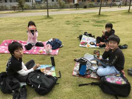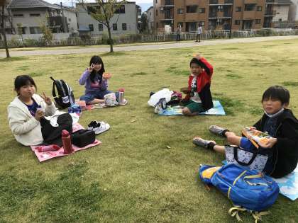 次に「呉羽丘陵多目的広場」へ行って、弁当タイムと遊びタイムを楽しみました。