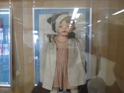 水橋西部小学校の船木英明校長先生(写真上)が、おいでになりました。青い目の人形(写真下)のビデオを借りに来られました。水橋西部小学校にもにも、青い目の人形があります。当時のビデオを子供たちに見せるということで借りに来られました。
