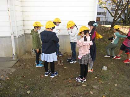 飼育していた「カニ」がなくなったので、お墓をつくっています。