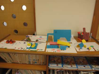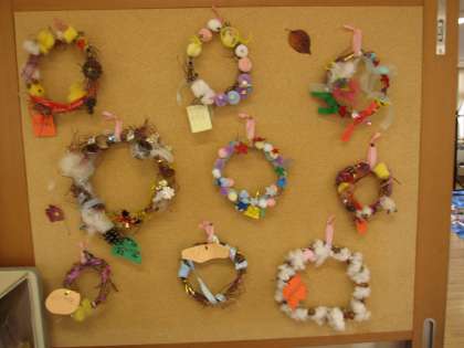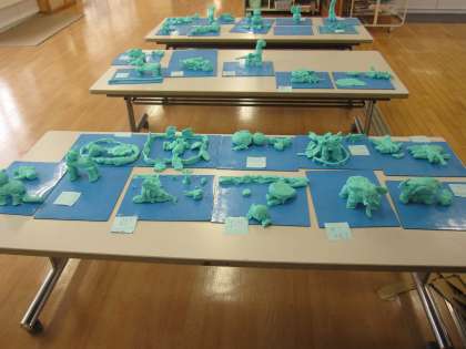 授業でつくった物を教室前に展示してあります。 どうぞご覧ください!