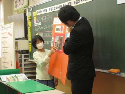・工夫を発表ました。自分の評価がわかりやすいように、シールの色で表しました。