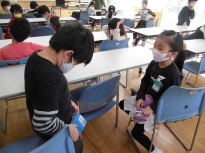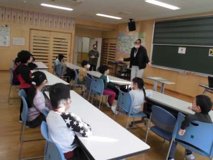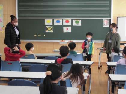 今日は、アヴァ先生との初めての外国語活動でした。『色』の言い方について学習し、自分や友達の洋服から「red]「blue」「green」等の様々な色を探しながら、楽しく活動しました。