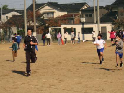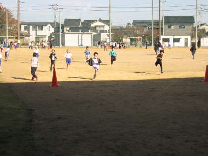 さわやかな空の元で、みんなで50m走を行いました! 中には、汗をかいている児童も!!
