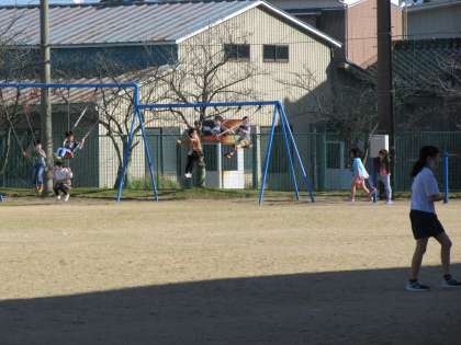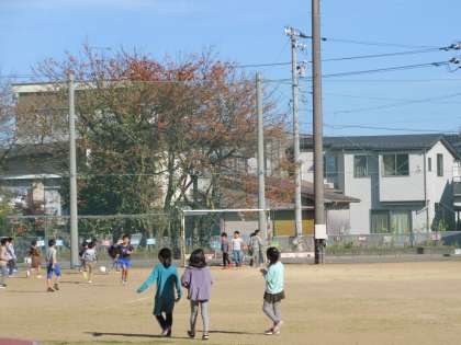 11月と思えないほど、暖かな日になり、たくさんの子供たちがグラウンドで遊んでいました。サッカー、ブランコ、おにごっこ等をして、元気に身体を動かしていました。