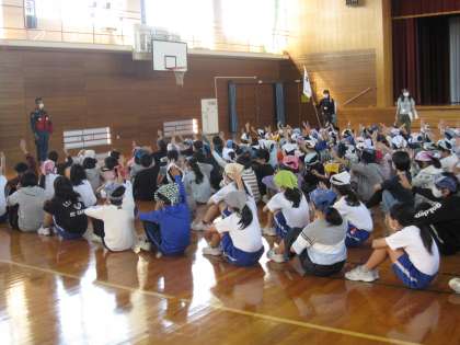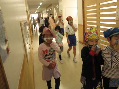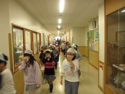 今日は、清掃中の避難訓練でしたが、それぞれの清掃場所から、真剣に避難することができました。消防署の方から、「お・・押さない、は・・・走らない。し・・・しゃべらない、も・・・戻らない」の約束をよく守っていたと良い講評をいただきました。