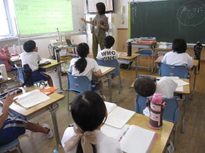 国語でローマ字を学習しています。すでにクロムブックではキーボードゲームなどで使っていますが、大文字や小文字など表記についても学習していました。