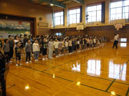 学習発表会では、全校合唱を発表します。大勢が集まった歌声は迫力があります。みんなで気持ちを一つにして歌いたいと思います。