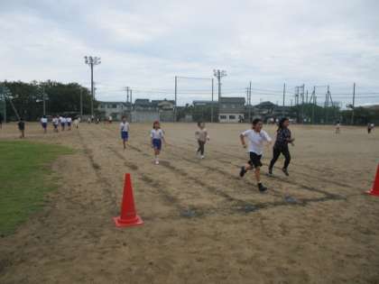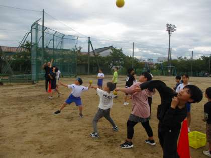 団別に走・跳・投の運動をしました。全ての運動をバランスよくできるよう日替わりでローテーションして進めていきます。