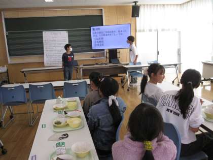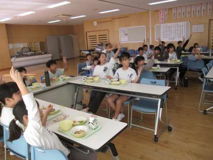 今日は青団1〜3班のファミリー会食です。給食委員会からのクイズで盛り上がっていました。
