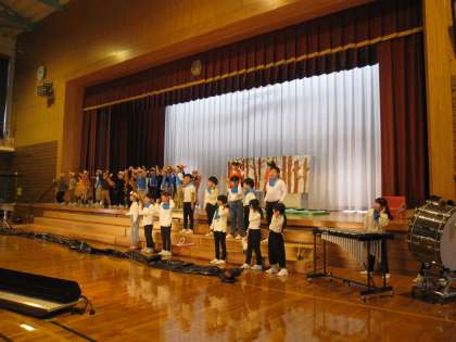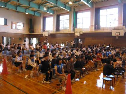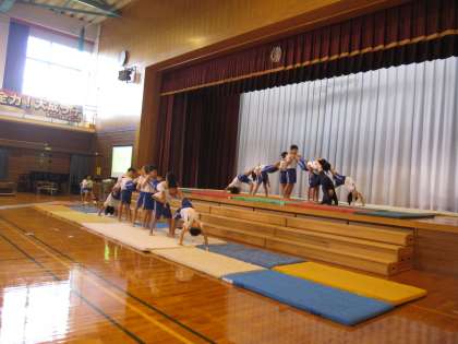 校内発表会があり、全校児童のみんなに発表しました。今日の演技を振り返り、土曜日によりよいものを発表しようと意欲を高めました。