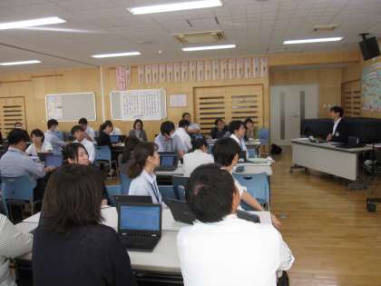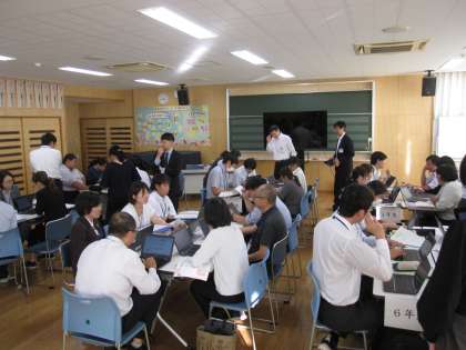 水橋学園になる4小学校の教員が集まり研修会がありました。どの学校も日常的に英語でコミュニケーションをとろうとする子供を目指してイマージョン的教育に取り組んでいます。各学年に分かれ、どの単元でどんな英語のフレーズを取り入れて実践できるか話し合われました。