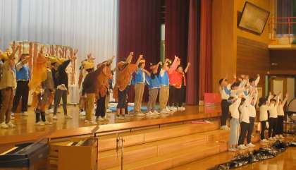 主人公のカムが困難に立ち向かい、目的を達成する劇の内容と同様に、学習発表会の成功を目指し、昨日の自分よりも今日の自分をよくしようと頑張りました。子供たちは、学習発表会を終え、練習の成果が出せたことに大変喜んでいました。今回の成功を糧に、これからも様々なことにチャレンジしていきましょう。