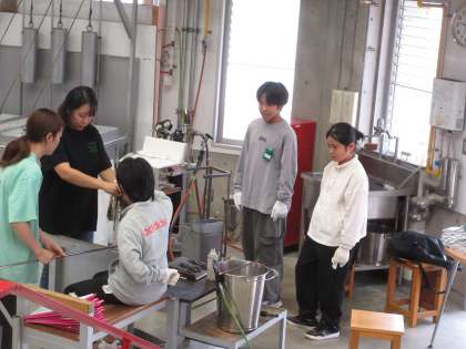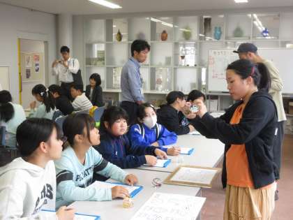 始めに、形やデザインを考えて、その後工房に移動しました。大変熱い炉の中でガラスを溶かすのでみんな気をつけて熱心に作品づくりに取り組みました。11月に入るとできあがるそうです。できあがりを楽しみに工房を後にしました。