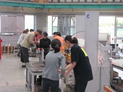 ガラス職人の方にサポートしていただきながら、形を整えたり、模様をつけたりしました。思い出に残る楽しい体験となりました。最後にみんなで記念写真を撮りました。
