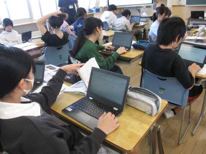 理科「大地のつくり」の学習です。地震や火山の噴火によってどのような災害が起きるのか、またその対策について調べてまとめていました。