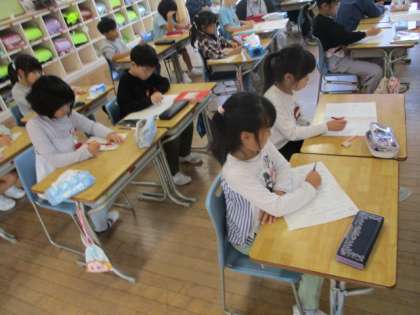 「上(うえ)」「上(あ)がる」、「上下(じょうげ)」など漢字にはいろいろな読み方があることを確認していました。