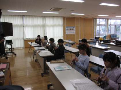 中:合奏クラブです。リコーダーとギターで「オーラリー」を演奏していました。