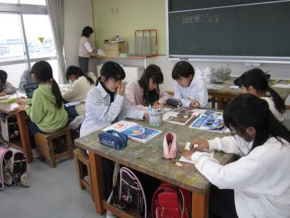 上:工作・手芸クラブです。今日はイラストを描いていました。