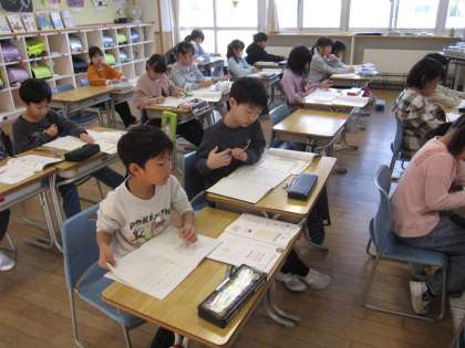 算数では九九を学習しています。5のだん、2のだん、3のだん、4のだんまできました。今日はここまでの問題を解いていました。このあとのだんもがんばって覚えましょう。