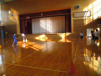 体育ではベースボール型のゲームをしていました。自分たちで審判しながら進めていました。