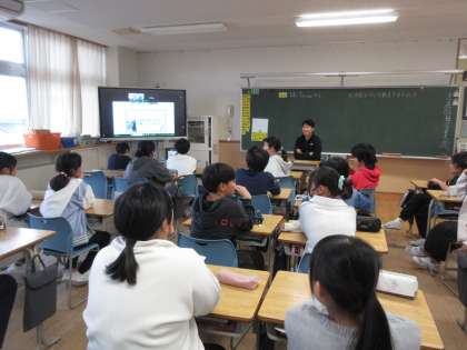 昨年度、本校で勤務されていた先生によるオンラインの国際理解教育が行われました。スリランカで現地の子供たちに環境問題やそれを改善するための活動に取り組んでいる様子を伝えてもらいました。また、現地のシンハラ語での簡単な挨拶や生活や暮らし、文化等も教えてもらいました。子供たちは懐かしい先生との再会を喜びながら興味をもって学んでいました。