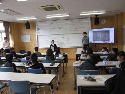 外国語活動の時間です。自分のお気に入りのパフェについて、英語で発表していました。
