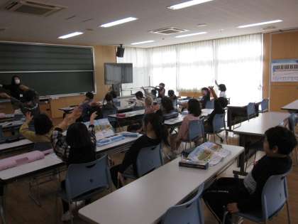 音楽では「トルコ行進曲」の鑑賞をしていました。二つの旋律を聴き分けて体で表現していました。