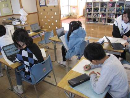 総合的な学習では「大成のすてき」を調べてきました。きょうは新聞にまとめていました。
