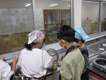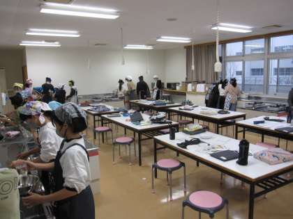 きょうの3限に、米作りを教えてくださった地域の方を招待し、おにぎりパーティをします。お米をとぎ、準備に取りかかっていました。