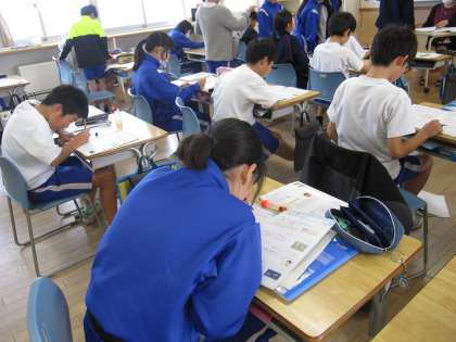 算数の時間です。テストやプリント、ドリルなど間違ったところを直しています。2学期も通分、約分、平均などたくさんの学習をしました。しっかりと復習しましょう。